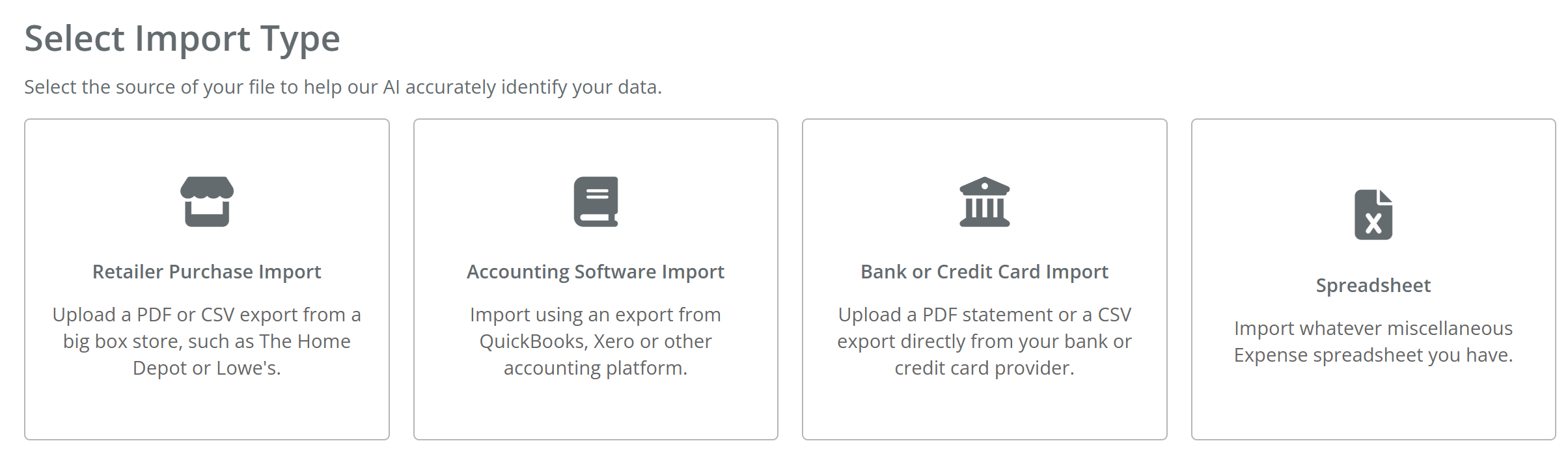 Bank or Credit Card Statements : Upload a monthly statement in PDF or CSV. The AI identifies the vendor, extracts the amount, and suggests the correct budget category.