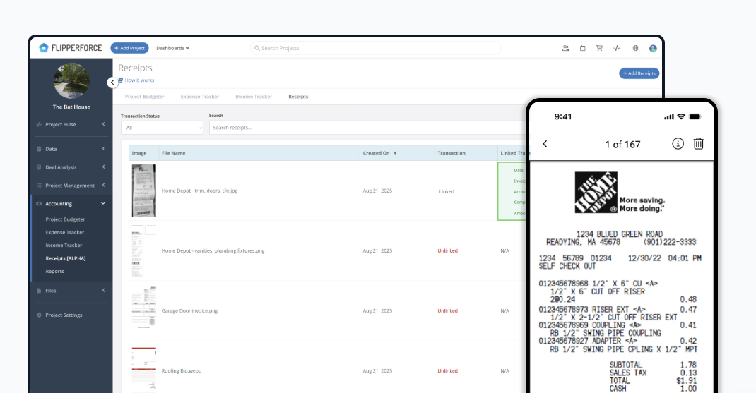 Learn how to use the Receipts to organize and process your project receipts.