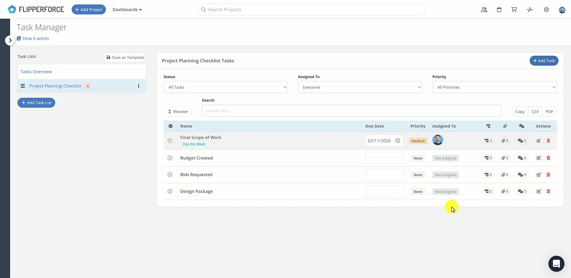 You can now create checklists within any individual task to manage smaller to-dos and "boots on the ground" details in one place.